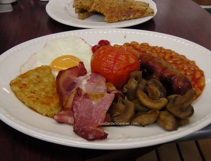 Prices are reasonable for this type of garden centre cafe. There was a choice of four main meals (including a vegetarian option) at £7 to £8. Less substantial meals include paninis, baguettes and sandwiches. Breakfast meals (full breakfast is £5.95) and snacks are served from 9 to 12 (starts at 10 on Sundays) and main meals are served from 12 onwards. Other example food and drink prices are tea from £1.20, filter coffee £1.55 and filled jacket potatoes at around £6.