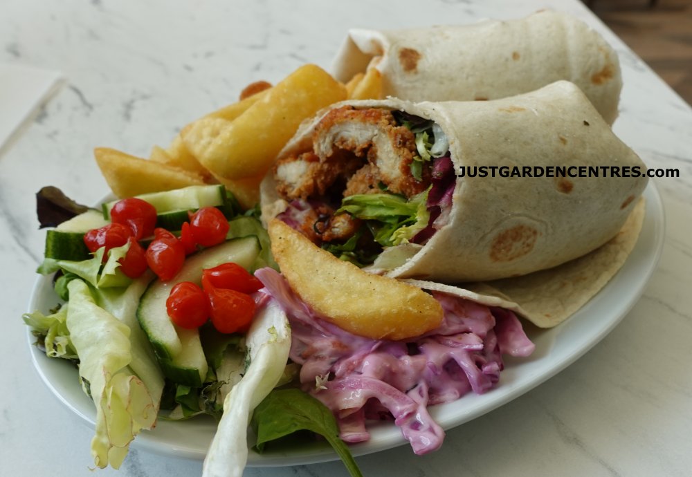 The two wraps were truly stuffed full with crispy chicken and a delicious sauce. The chunky coleslaw was very tasty and the chips exceeded our expectations. Congratulations to Gloucester Garden Centre, we will certainly re-visit this cafe.