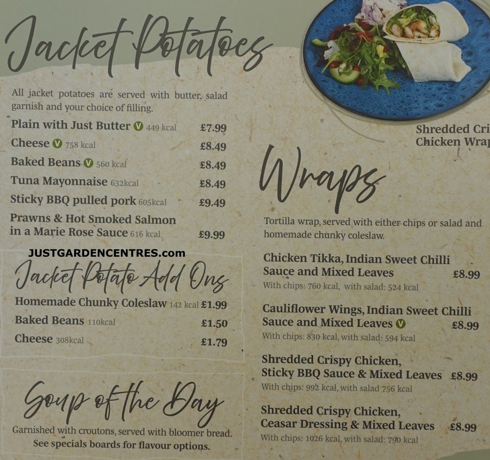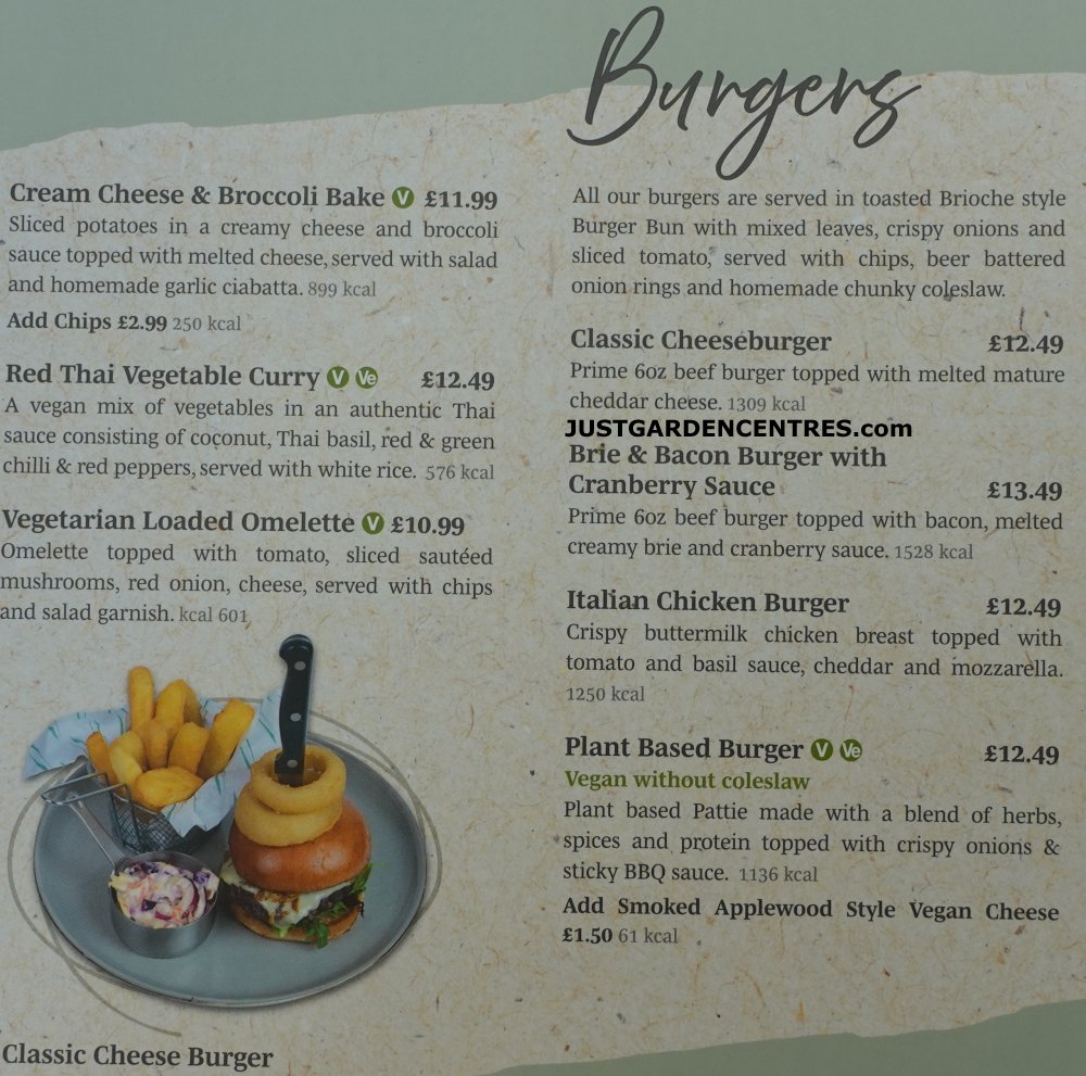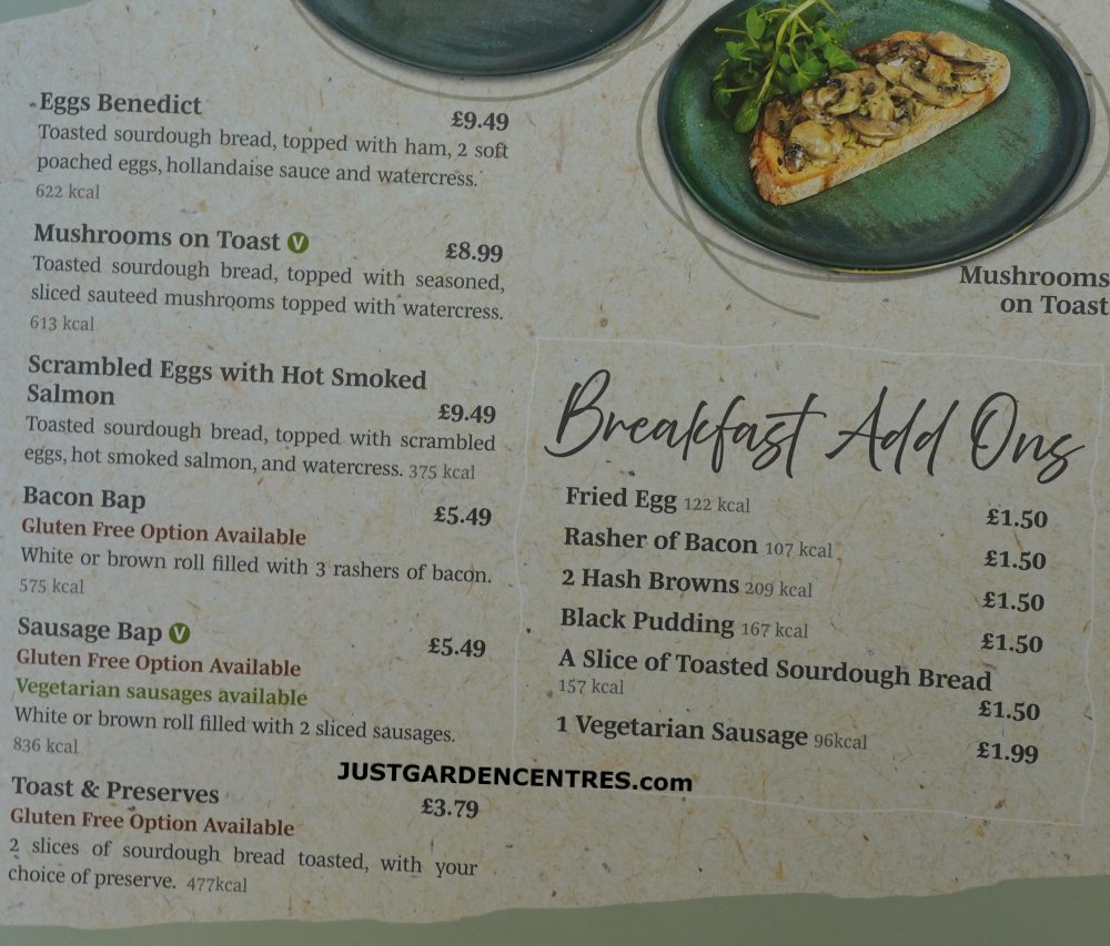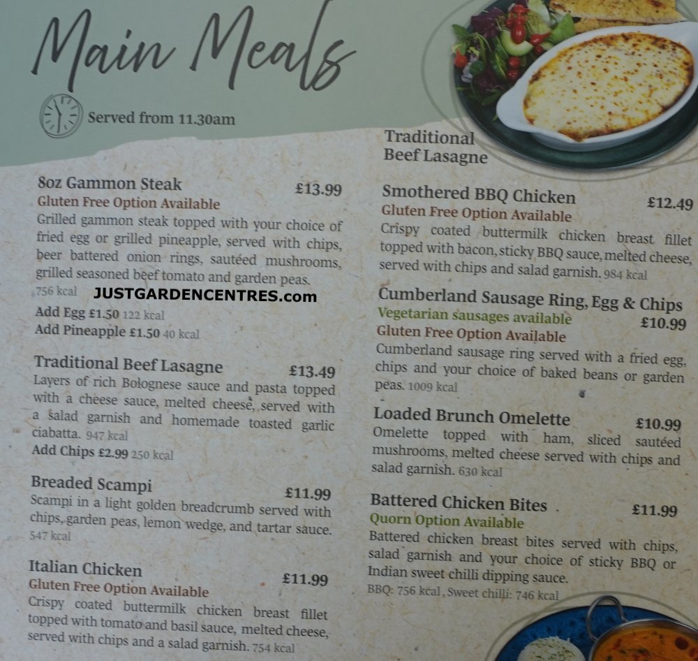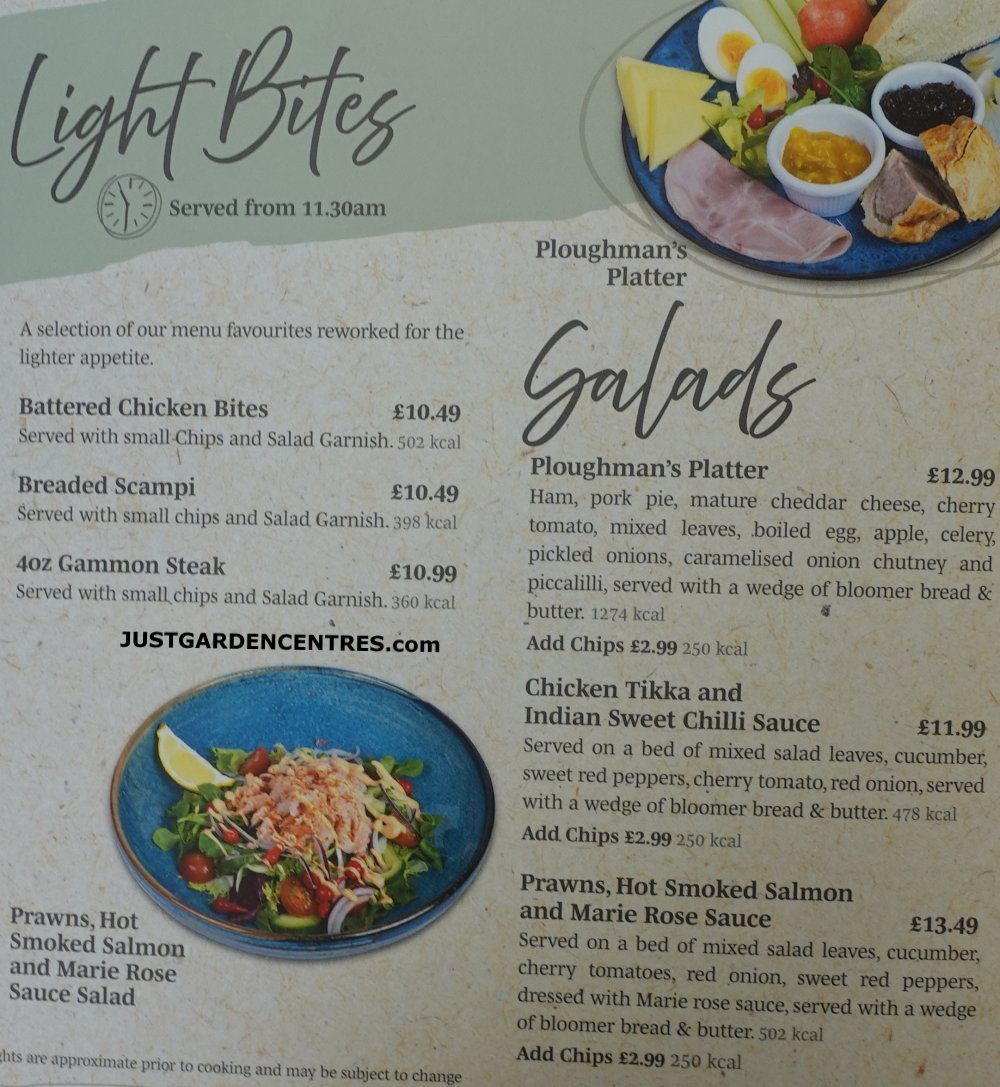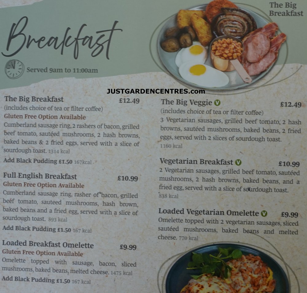 FOOD TYPE: The cafe serves a very full menu of food for all tastes at this garden centre. Breakfast service ends at 11.00, lunch service begins at 11.30. Our pictures of the menus below give a better idea of the food on offer.