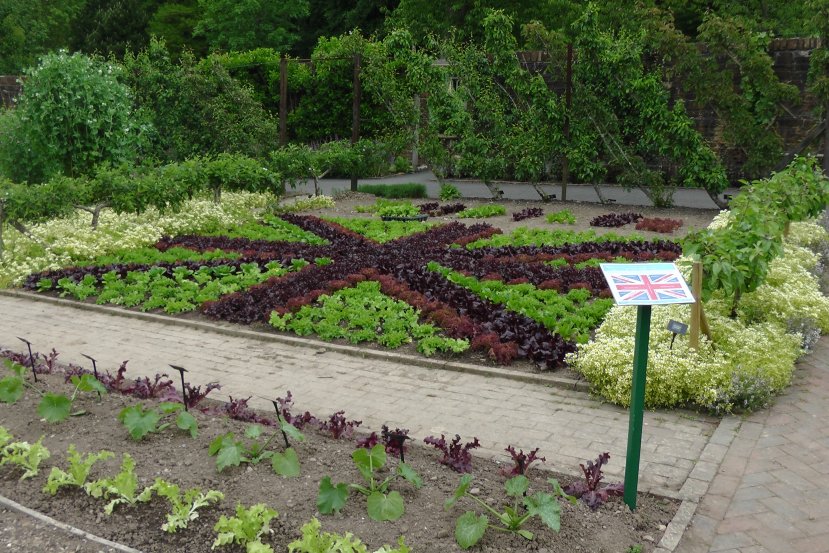 The Garden Kitchen restaurant has two seating areas, the main one under cover and another one outside with large parasols to provide a moderate level of cover. The outside seating area is the best of the two with large wooden picnic bench type tables. The surroundings are pleasant with a half brick greenhouse and wisteria clad arches.