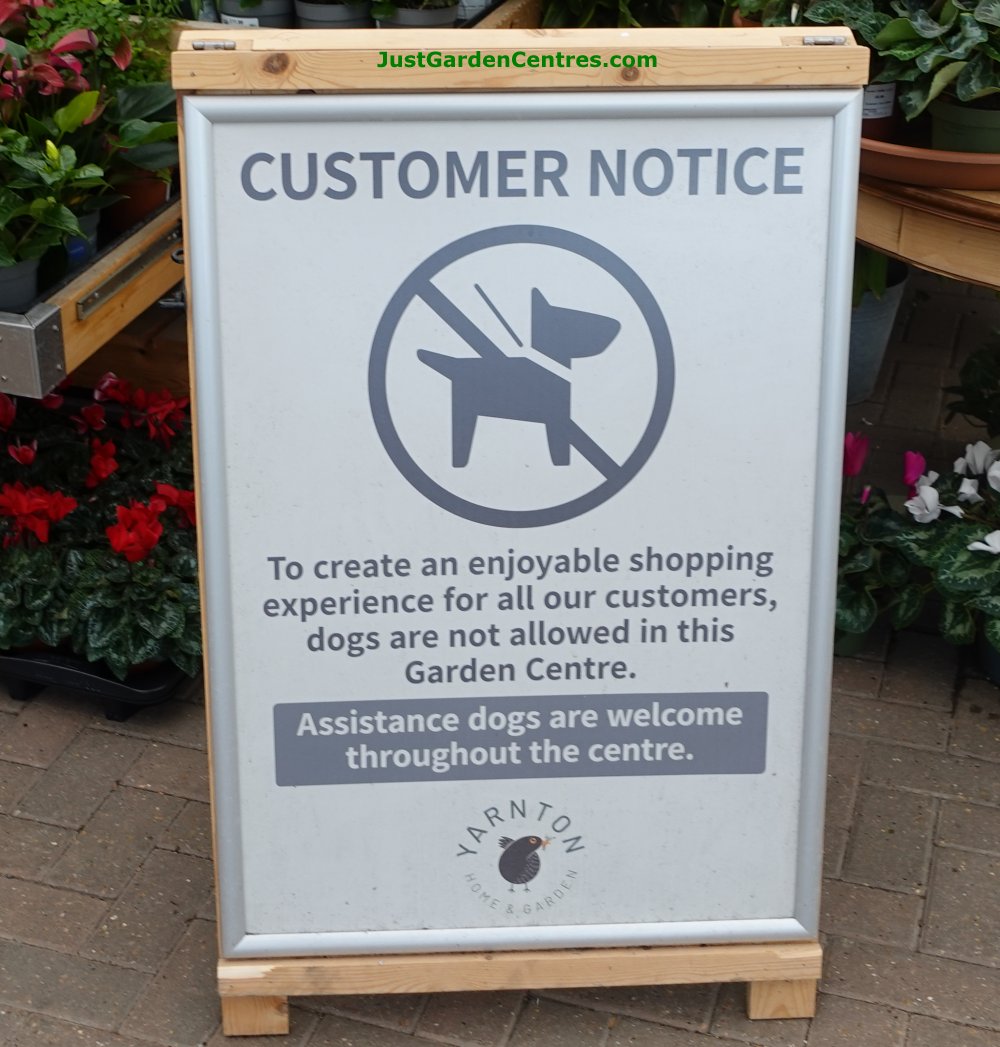 IS YARNTON HOME AND GARDEN DOG FRIENDLY? At the time of writing (October 2025) Yarnton Home and Garden has a sign by the entrance in a prominent position stating that they are not dog friendly, only assistance dogs are permitted anywhere in this garden centre.